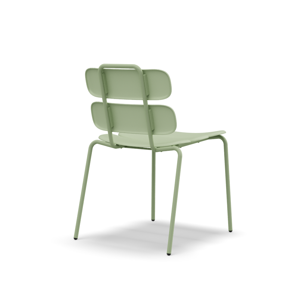 The Lemon chair is ideal for outdoor use. Its distinctive technopolymer staved design makes it a distinctive and practical piece of furniture that is also suitable for indoor settings. The frame has no visible screws and is available in either a version with armrests or without, both of which are stackable. Lemon is offered in a curated selection of 6 colors: black, ivory, gray, yellow, red, and green.